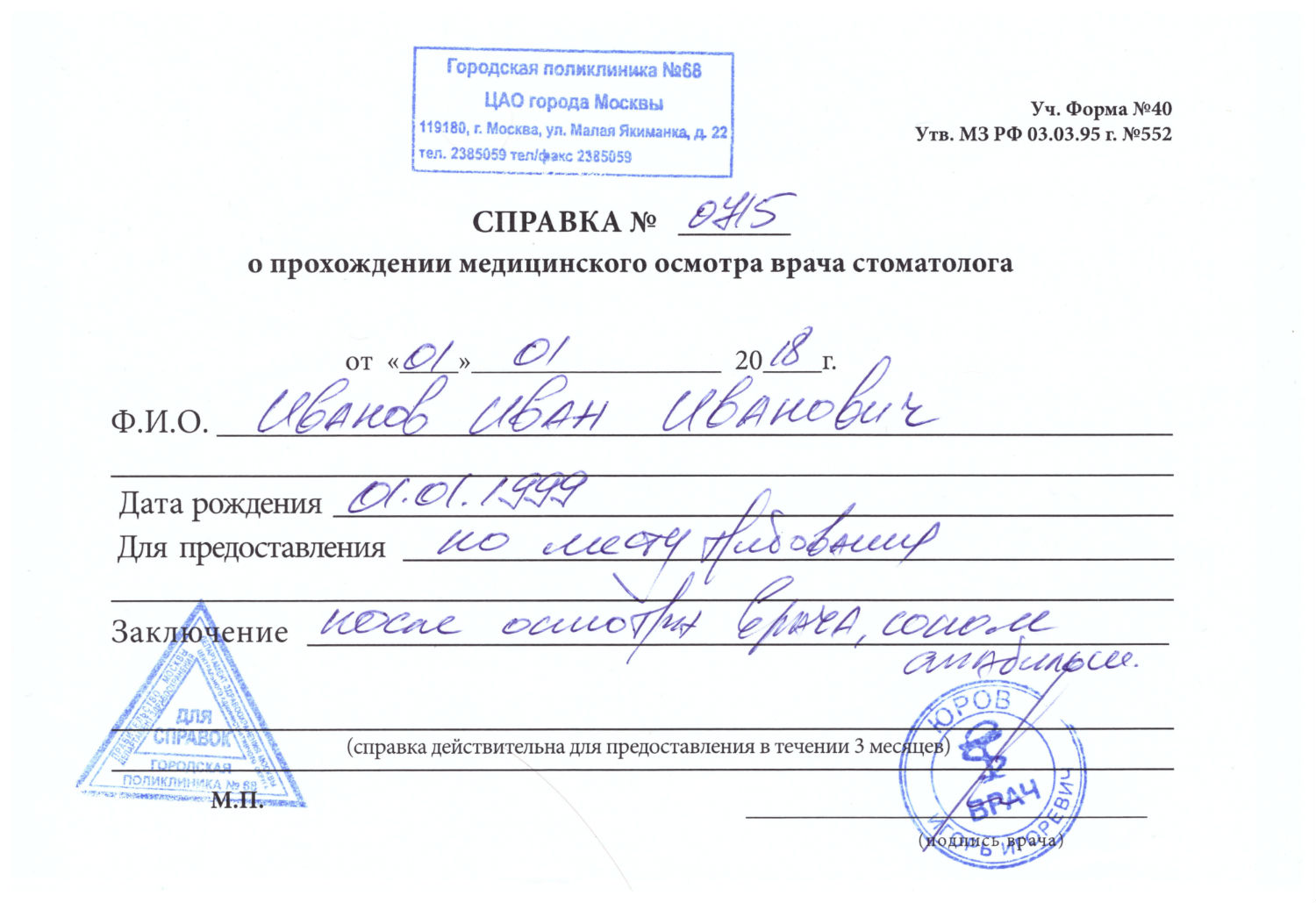 - есть все печати, подписи, личные данные доктора и клиники;