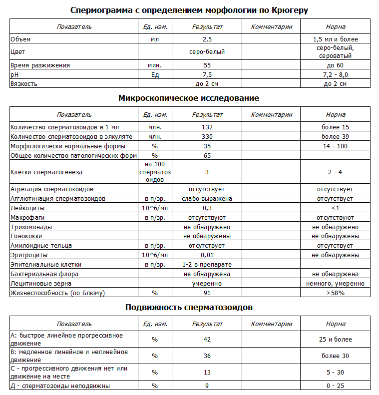 При оценке эякулята учитывается объем, цвет, запах, время разжижения секрета, а также количество, подвижность и концентрация сперматозоидов. Нормоспермия – диагноз, указывающий на нормальные показатели семенной жидкости, а значит, и плодотворную мужскую фертильность.