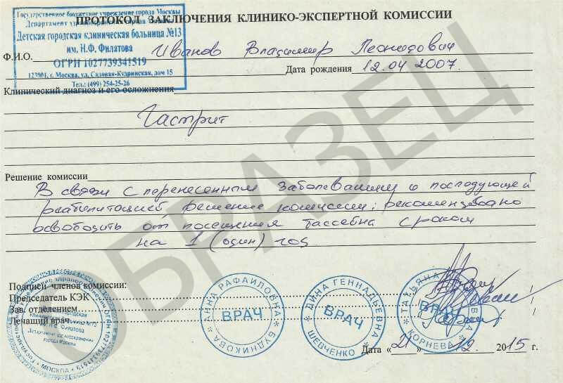 - при оформлении освобождения – если стоит вопрос о длительной непригодности ученика к урокам физкультуры;